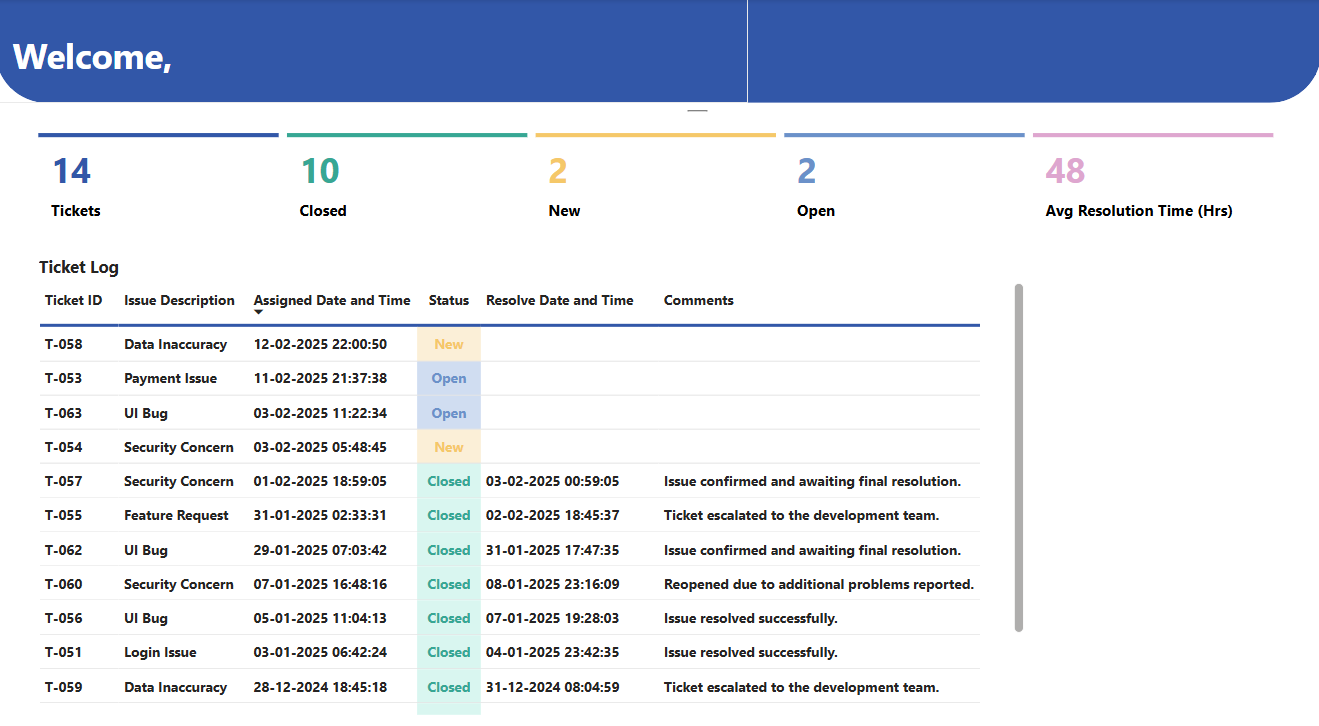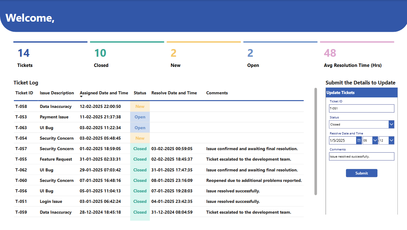 Once the data is submitted, Power BI will refresh automatically, reflecting the updated ticket details in real time on the dashboard. This ensures that all users viewing the report have the latest information without needing to refresh the page manually or switch between applications.