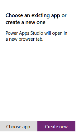 - To create a new app, select “Create New” and click “Go to Power Apps Studio”. This will open Power Apps Studio in your browser.