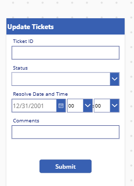 Return to the Power BI report and refresh the page. The Power App is now embedded, allowing users to update ticket information directly within the report.